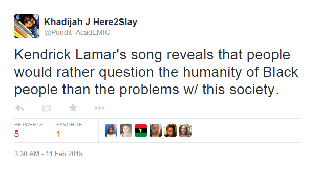 Kendrick inaccurately & disrespectfully dragged Trayvon Martin’s name to defend a myth. BLACK ON BLACK CRIME IS A MYTH. It’s not real. Crime is a social construct driven by social, political, and economic systems, institutions, and factors. For some odd reason not many people question how and why Black people are the only ones to get an exclusive crime category/statistic. Black people aren’t dangerous & detrimental to ourselves. The causes of what many ahistorical and apolitical people think is “Black on Black crime” is the same thing that killed Trayvon: the intersections of white supremacist racism, cishetpatriarchy, ableism, and capitalism. If you place a disempowered population into cramped neighborhoods without resources to live equitably, remove their access to power structures, create an education system that indoctrinates them into Anti-Blackness & robs them of educational advancement, tell them to get money & survive by any means necessary, & then tell them their lives don’t matter and they have no history you will end up seeing them embody and internalize that self hatred & follow the rules of society. Constrained agency is NOT freedom. All crime is highest within groups because the U.S. is a HIGHLY RACIALLY SEGREGATED settler colony. DOES ANYBODY FIND IT ODD THAT WHITE PEOPLE ARE RESPONSIBLE FOR WORLD WARS THAT KILLED MILLIONS OF OTHER WHITE PEOPLE BUT WHITE ON WHITE CRIME ISN’T A REAL CATEGORY/STATISTIC? You ever ask that question? Kendrick’s song is lazy. It’s inaccurate & disrespectful to mourning Black people who are seeing an unjust system murder us at genocidal rates. Kendrick has all that money but can’t buy a book or Google why and how “Black on Black crime” is a victim blaming myth. “The Blacker The Berry” engages in a dehumanizing respectability politic meant for the purposes of telling Black people we can’t fight for each other because we aren’t as perfect as society’s problematic image of whiteness as the ultimate humanity & kindness. Kendrick & anybody else who agrees with the notions of this song need a reading list and history lesson. If you want one I will definitely give you one. But don’t sit there on your respectable high horse & support this ahistorical apolitical inaccurate song because it fits the white supremacist racist idea of Black pathology.